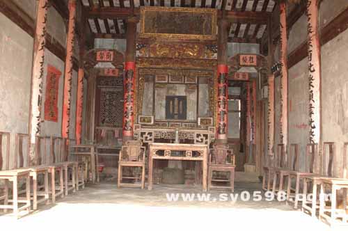 位于忠山村西北部、坐東朝西,占地面積700平方米,建筑面積為500平方米,為兩進(jìn)制穿斗歇山式木構(gòu)建筑。由山門、前坪、前堂、天井、回廊、上堂左右護(hù)厝幾部分組成。山門與矮墻尚存,上堂為三進(jìn)五開間,石基,磚鋪地面。正廳為木構(gòu)神龕,祀奉祖宗祖位。 |