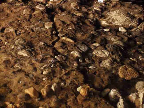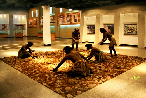 萬壽巖遺址博物館 三明市萬壽巖遺址博物館占地5600平方米,主體建筑2400平方米,按國家文物局要求,為單層建筑,局部兩層。內部分為兩大展廳、多功能演示廳、庫房及辦公室等。 船帆洞人工石鋪地面 遺址文化層 |