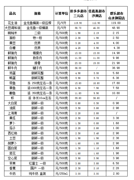三元區(qū)價(jià)比三家價(jià)格一覽表12月13日