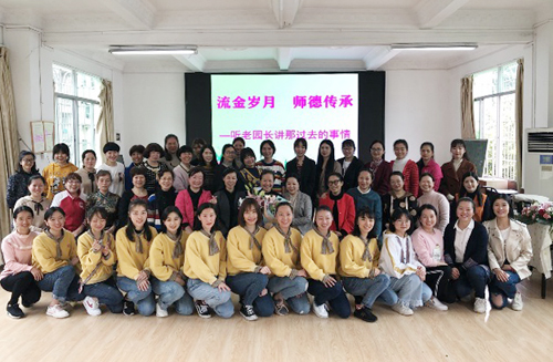 活動伊始,72歲高齡的胡園長從講述東霞幼兒園的創辦歷程和老教師們克服資金短缺、人員不足等種種難關,不畏困難、努力拼搏的行動出發,帶給在座每一位教職工滿滿的正能量。講座中,胡園長結合多年從教經驗,以大量生動的案例深刻闡述了“愛是師德之魂”的含義,特別提出:教師要有“六愛”,愛職業、愛團隊、愛崗位、愛孩子、愛自己、愛同事,只有以愛為本、以德為先,才能真切地感受到幼教職業的幸福與成就感,實現自我價值。