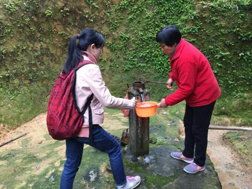 在詳細掌握了監督點(橫坑村)人口資料后,工作人員以戶為單位,開展居民飲水情況調查,并現場采集居民飲水水樣。同時,還為橫坑村8-12歲的學生們進行了氟斑牙檢查。