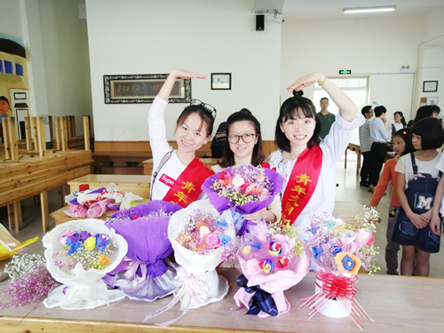 為了讓孩子們感受到更多親人般的關(guān)愛,度過一個(gè)愉快而有意義的周末,志愿者們提前做了精心的準(zhǔn)備,帶來了各色的超輕黏土和許多花束包裝紙,和孩子們一起制作黏土玫瑰花,在志愿者們的幫助、鼓勵(lì)下,孩子們做出了馬蹄蓮、玫瑰、桃花等多種款式與色彩的花。隨后孩子們將自己親手制作的手工花,獻(xiàn)給自己最親愛的老師和各界愛心人士,并大方地表達(dá)出自己真摯的謝意。