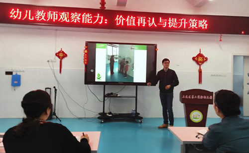 為提高教師的觀察分析能力,推進(jìn)市級課題《基于生活體驗(yàn)的幼兒園混齡串聯(lián)游戲?qū)嵺`研究》研究,5月6日傍晚,三元二實(shí)幼邀請三明醫(yī)學(xué)科技職業(yè)學(xué)院的焦揚(yáng)老師來園做《幼兒教師觀察能力:價(jià)值再認(rèn)與提升策略》的專題講座。區(qū)第二實(shí)驗(yàn)幼兒園全體教師參加學(xué)習(xí)。