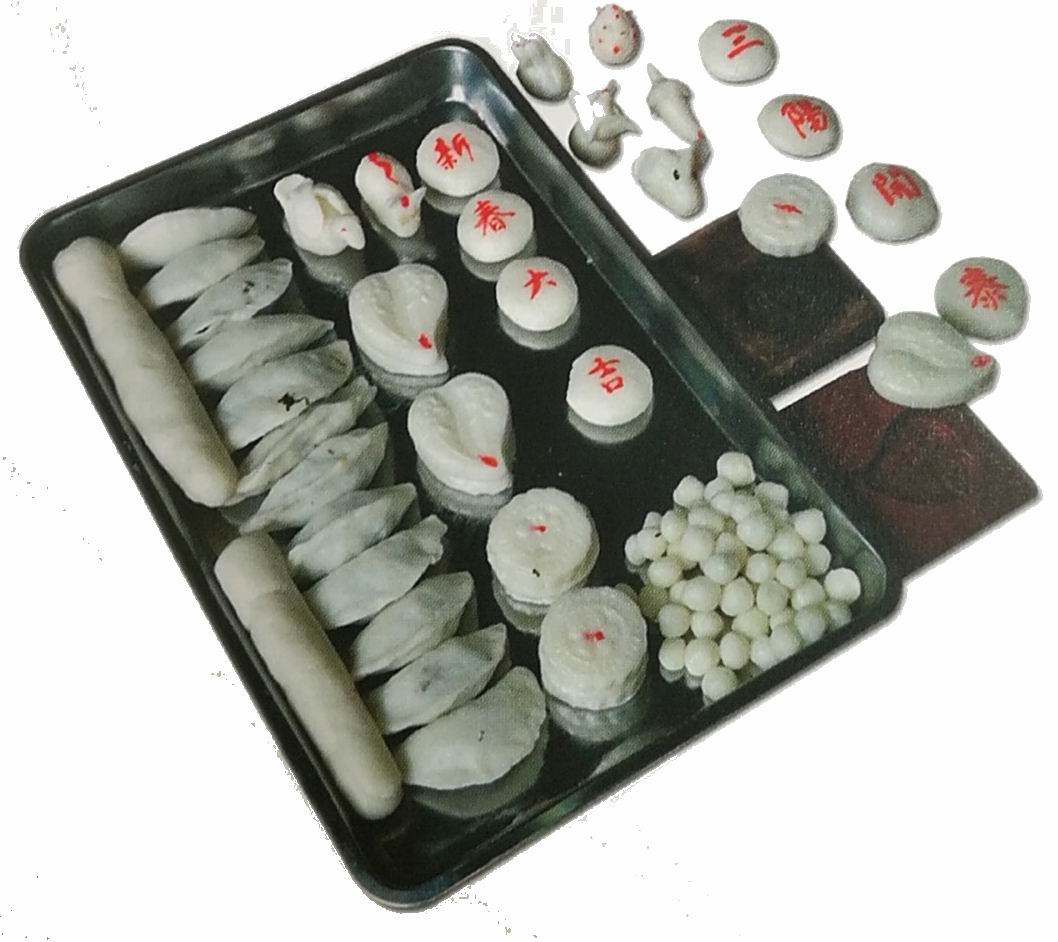 (6)包粿:用兩手掌心略搓成扁圓狀,其它手指邊托邊在反面輕壓使一小團形成薄薄的小碗狀,包入炒好的餡。
