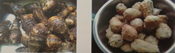 5.煮芋餃:要用猛火,一定要讓鍋中的水開后才放入芋餃,等芋餃浮出水面后適量滲入冷水,待水再次開時就可撈起裝盤。 |