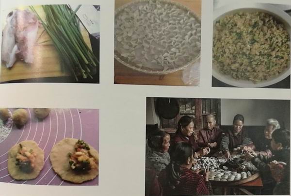 3.和揉芋面。先將蕨粉和地瓜粉和入芋泥中(一般是1:1),邊和邊揉逐步加入蕨粉,揉至不粘手為準。 4.皮與包餡:將揉成團的芋面,取其一小團用拇指和食指不斷捏轉,使小芋團變成一塊平圓形,再包入餡,粘成三角形,三元人的芋餃形狀不同于明溪扁船形的"蕨秋包”,而一定是“三角餃”。三角表示“安定",三角預祝福祿壽。 芋餃餡料一般由三層肉肉沫、香菇丁、紅菇、豆干、烏筍、胡蘿卜、包菜、蝦米、蔥花等構成。將餡料切細后用油炒熟,等餡料稍涼后才包入芋面皮中。