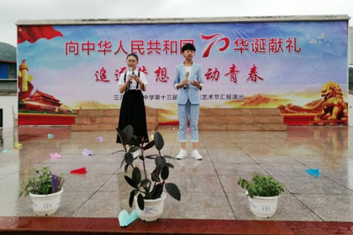 為慶祝中華人民共和國成立70周年,活躍校園文化,陶冶師生情操,促進學生全面發展,營造健康有益的校園文化氛圍,展示學校師生團結進取、拼搏奉獻、和諧樂觀、爭優創先的良好精神風貌,5月31日,三元區莘口中學舉辦第13屆校園藝術節。