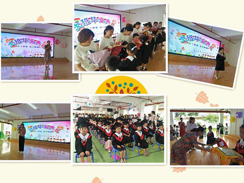 畢業典禮包括走紅地毯、跨成長門、撥穗正冠、親點朱砂、書寫‘人’生”等活動。吳曉燕園長向即將畢業的孩子們表達了美好的祝愿和希望,家長代表訴說了孩子成長的喜悅和對老師的感謝,幼兒代表也表達了三年來對幼兒園的依依惜別之情和對老師的愛,畢業典禮在孩子們的《畢業歌》中圓滿結束,老師和孩子們情不自禁的流下了惜別的眼淚。