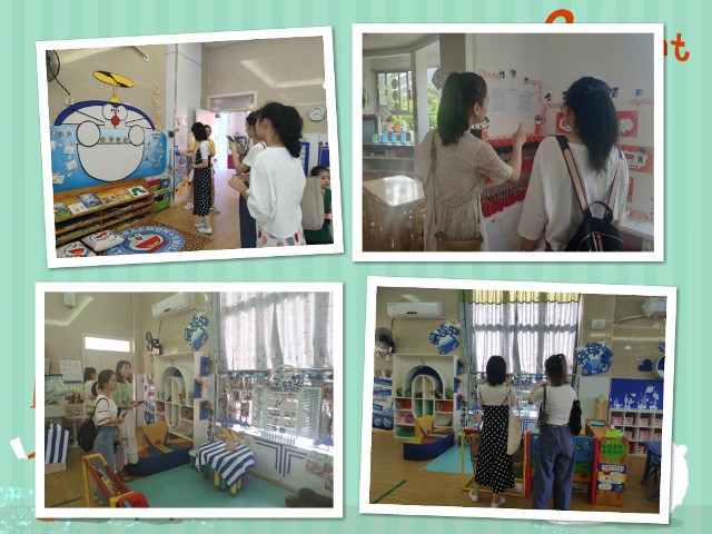 三元二實(shí)幼的教師們帶著學(xué)習(xí)借鑒的態(tài)度,走進(jìn)每一個(gè)班級,認(rèn)真學(xué)習(xí)空間布局、區(qū)域、主題墻、家園聯(lián)系欄、自然觀察角等環(huán)境布置,大家邊看邊討論著、交流著,感受著總園在環(huán)境創(chuàng)設(shè)中的教育理念和文化氛圍,并用相機(jī)記錄下一個(gè)個(gè)精彩的畫面。