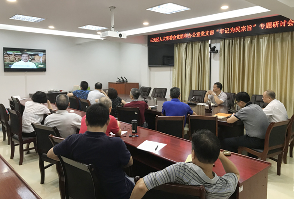 9月30日,三元區人大常委會黨組和辦公室黨支部組織機關在職黨員干部召開“不忘初心,牢記使命”主題教育第四次學習研討會。