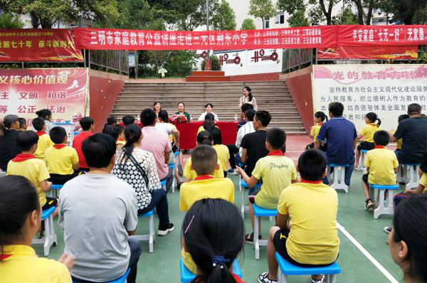 10月15日下午,三明市家庭教育公益講座走進三元區荊東小學,陳福英講師為全體學生及其家長們做“禮儀”主題的專場講座。