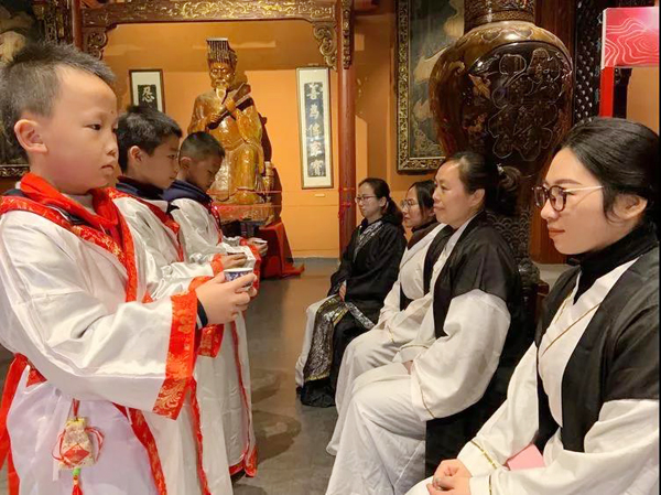 12月17日,三元區(qū)第二實驗小學(xué)三年段的孩子們踏上“十歲成長禮之尤溪朱子苑”研學(xué)旅程。活動包括獻(xiàn)官擂鼓、沃盥、拭手、焚香、敬酒以及學(xué)子們獻(xiàn)果獻(xiàn)胙等莊嚴(yán)的“拜師禮”。拜師禮后獻(xiàn)官恭讀祝文,全體孩子們敬拜朱熹,齊誦《朱子家訓(xùn)》。