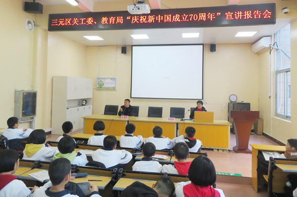 12月26日下午,三元區(qū)關(guān)工委、教育局“慶祝新中國成立70周年”宣講報(bào)告會(huì)在三明三中階梯教室召開,100余名學(xué)生參加。三元區(qū)關(guān)工委中小學(xué)德育報(bào)告團(tuán)成員林淑清作《復(fù)興之路》主題報(bào)告。