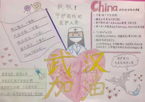 三是開展“新肺炎防護我宣傳”活動。指導學生通過手抄報、繪畫、征文、抖音視頻、書信等形式宣傳新型冠狀病毒防護的知識,宣傳抗擊疫情的先進事跡,表達對奮戰(zhàn)在戰(zhàn)“疫”一線的醫(yī)務工作者的崇高敬意和戰(zhàn)勝疫情的必勝信念。