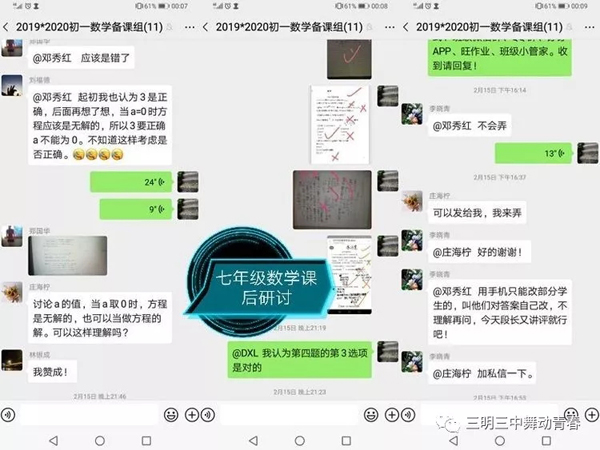 2020年的春季,由于新型冠狀病毒引發的肺炎疫情,全省開學時間延后。根據全市學校疫情防控工作專題會議精神及上級相關部署,三明市第三中學根據各年段特點和學校設備實際情況,迅速制定“停課不停學”具體實施方案,組織教師們利用“云直播”為學生開展線上輔導。 線上教學 學校成立“線上教學”領導小組,建立在線教學服務管理組織,明確人員分工和職責。九年級每天安排7節課, 每節課30分鐘;七、八年級各上半天、交替進行,每半天5節課,每節課25分鐘。選派全部校級領導、部分黨員教師、優秀教學、學科骨干承擔直播課教學任務,年段長、班主任做好學生“線上學習”的考勤管理工作,教務處、教研室做好直播現場教學管理,督促落實備課組老師在線聽課、科任教師批改情況管理,確保直播教學工作順利進行。