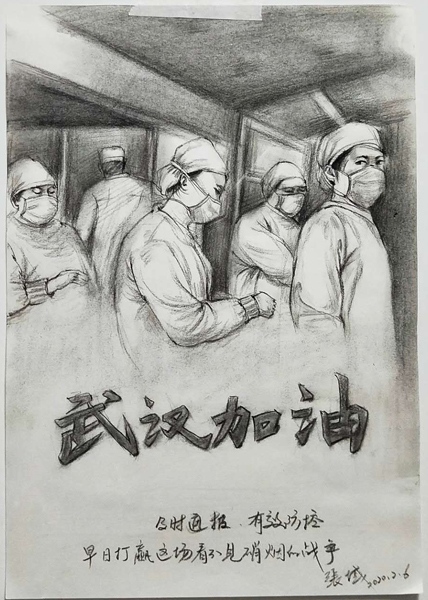 一場突出其來的疫情,無數“白衣戰士”成為“最美逆行者”,他們紛紛請戰,毅然沖鋒在防控疫情第一線,譜寫出一個又一個的感人故事。疫情的陰霾擋不住四面八方的“陽光”。三明九中的學子們,紛紛用自己筆尖創作出素描、速寫或色彩作品,共同致敬“最美逆行者”。