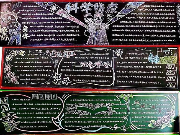 黑板報是學校“防疫”工作的宣傳窗口之一,各班主任精心準備、制作的板報不僅主觀大方、創意新穎,而且色彩協調、圖文與裝飾布局合理,主題鮮明。小小黑板報傳遞濃濃抗“疫”情!