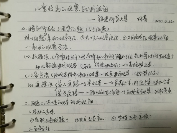 講座結(jié)束,教研組馬上組織老師們就“如何把握兒童觀察與分析的視角”進(jìn)行線上研討,大家文思泉涌,各抒己見(jiàn),梳理分享,有效鞏固提升。 |