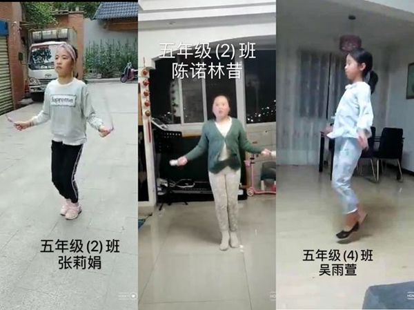 競賽過程中,為了保證公平、公正,由家長們擔(dān)任裁判,將整個過程用手機拍攝下來,參賽學(xué)生按照比賽要求并上傳參賽視頻,由體育老師按照項目的完成情況進行評比。從4月1日起,“線上跳繩吉尼斯擂臺賽”已進行三周,已累計1200多人次參賽。