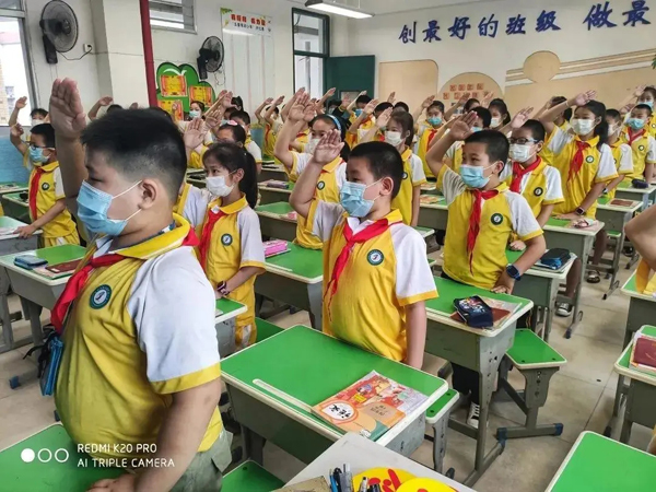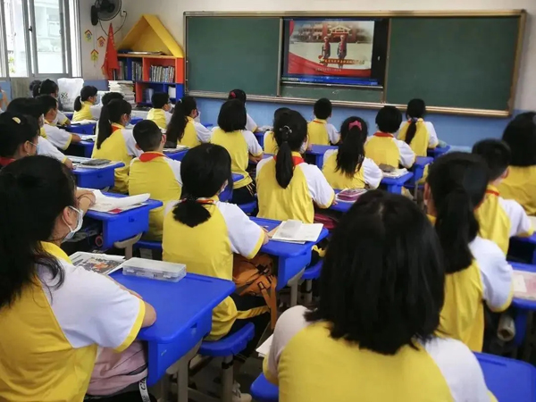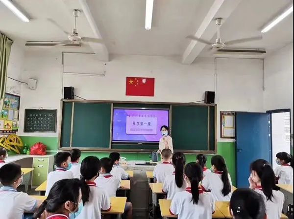 三元區建設小學 今年的復學典禮在各班教室舉行。面對著懸掛在黑板上方的五星紅旗,師生們齊聲高唱國歌,開始了新的一學期。 復學典禮結束后,班主任帶領孩子們學習《開學第一課》,對孩子們進行愛國主義教育、傳統文化教育、生命意識教育等,并針對疫情下的新學期,對他們提出了新目標、新要求。