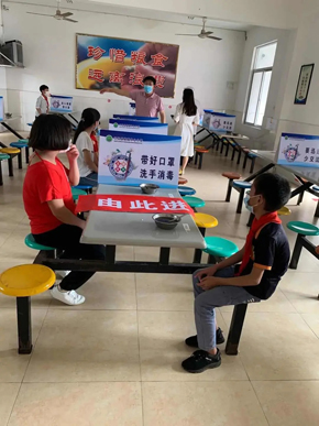 三元區巖前中心小學 巖前中心小學通過主題班會開展防疫知識培訓,要求學生要守紀律、講衛生,有秩序上下學。同時,為保證午餐時間學生不扎堆、講秩序,以班級為單位開展了放學后用餐演練,指導學生有序排隊、洗手、領餐、用餐及餐后按規定路線返回班級或宿舍。