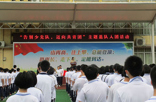 6月1日,三明市第四中學在田徑場舉行“告別少先隊,邁向共青團”主題退隊入團儀式。