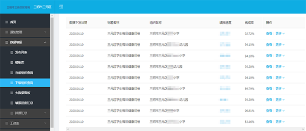 截至6月16日,三元區(qū)“復(fù)學(xué)碼”系統(tǒng)覆蓋全區(qū)26所學(xué)校,覆蓋教師1488名、學(xué)生19822名,教師填報(bào)率達(dá)99.2%,學(xué)生填報(bào)率達(dá)98.6%。 |