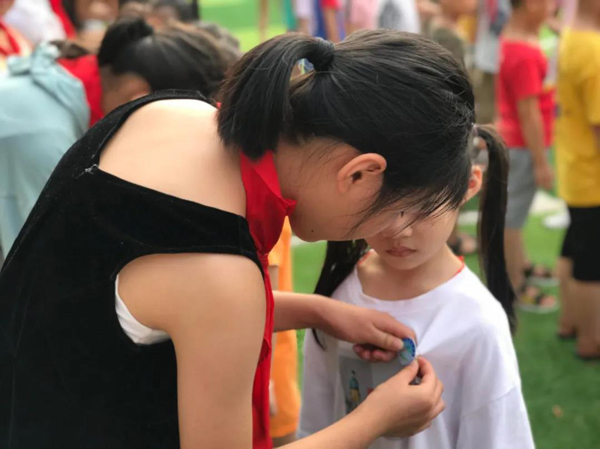 三元區(qū)臺江小學 朗朗金秋,朝陽初上。伴著莊嚴的國歌,鮮艷的五星紅旗冉冉升起,三元區(qū)臺江小學全體師生齊聚操場,舉行2020年秋季“國旗飄揚 伴我成長”開學典禮。儀式中,高年級同學為新生佩戴了校徽,展翅飛翔的校徽映襯出了成長的自豪。