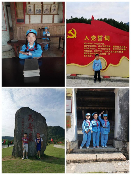 雙節期間家長們利用假期帶孩子到三明周邊萬壽巖、忠山村、西際村、沙縣燈光秀展示點等地進行了一次紅色尋訪活動。同學們尋訪了紅色基地,以“向國旗敬禮 向英雄致敬”為主題做出了一份份美麗的手抄報,學會一首愛國歌曲表達她們的愛國之情。放假期間,同學們幫助家里做一項力所能及的勞動任務,用自己的實際行動向偉大的勞動者學習的同時鍛煉身體。向親朋好友宣傳愛惜糧食、節約糧食的道理,爭做一名“愛糧節糧”小衛士,號召大家一起珍惜糧食,減少浪費。做光盤先行者,向舌尖上的浪費說不。