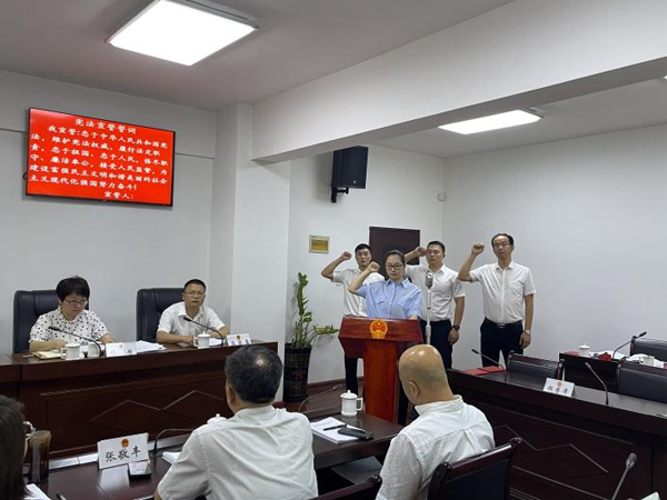 供職發(fā)言 會上,三元區(qū)人大常委會主任鄧秀忠為被任命人員頒發(fā)了任命書,被任命人員進行了憲法宣誓。