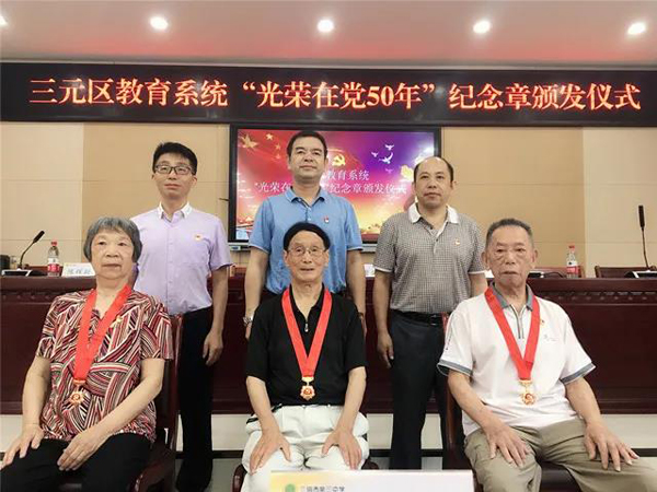 一百年征程浩蕩,五十年初心如磐。在全黨上下喜迎中國(guó)共產(chǎn)黨成立100周年之際,6月18日,三元區(qū)教育系統(tǒng)舉行“光榮在黨50年”紀(jì)念章頒發(fā)儀式,向全教育系統(tǒng)至2021年7月1日黨齡達(dá)到50年、信念堅(jiān)定、在黨愛(ài)黨的3名老黨員代表頒發(fā)“光榮在黨50年”紀(jì)念章,把黨中央的關(guān)懷送給我們可親可敬可愛(ài)的老黨員,動(dòng)員教育系統(tǒng)廣大黨員教師賡續(xù)光榮傳統(tǒng)、牢記初心使命、永葆奮斗本色。