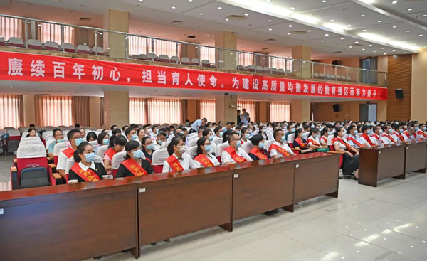 會上,區委常委、宣傳部長黃小榮宣讀了《中共三元區委 三元區人民政府關于對2020—2021學年度教育系統個人予以嘉獎的決定》《中共三元區委 三元區人民政府關于對2020-2021學年度優秀教師和優秀教育工作者予以表揚的決定》,并舉行了表彰儀式;優秀教師和優秀校長代表作了發言。
