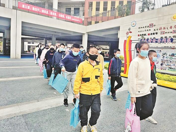 放學后孩子們拎著輕巧的布袋回家 “每天中午放學,書包都不用帶回家?!编嵶寇锹冻隽碎_心的笑容。 這是滬明小學本學期推動“雙減”落實,在全校開展的“書包不回家”行動,讓每位小學生樂享放學時光。 “書包里裝滿了書本、文具和各種雜物等,每天背著在學校和家來回四趟,負擔很重。”學生吳睿浩坦言。 針對這一情況,學校探索推出“書包不回家”行動,上午不布置作業,回家不帶書包,下午利用課后延時服務時間完成作業。同時,專門為學生設計制作了帶有校園文化特色的小布袋,用以取代大書包,方便學生攜帶課外書、畫筆、跳繩等物品。 “學校為家長開出家庭活動菜單,如體育鍛煉、勞動實踐、藝術活動、親子閱讀等,由家長和學生根據實際情況自主選擇?!苯處煆埰G超介紹,書包不回家,讓孩子們擁有一個更快樂、更精彩的童年。 //三明日報記者 吳文凱 通訊員 江羽朦 文/圖 |