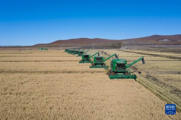 在黑龍江省農墾勤得利農場,種植戶駕駛機械收割水稻(2019年10月12日攝,無人機照片)。新華社發(fā)(謝劍飛 攝) 端牢中國飯碗,萬畝糧倉田疇起。黨的十八大以來,黑龍江大力推進農業(yè)現代化建設。如今,黑龍江已建設“旱能灌、澇能排、田成方”的高標準農田9141萬畝。“藏糧于地、藏糧于技”戰(zhàn)略深入實施,截至2021年底,黑龍江農業(yè)科技進步貢獻率達到69%,全省農作物耕種收綜合機械化率達到98%以上,比2012年高6.33個百分點。