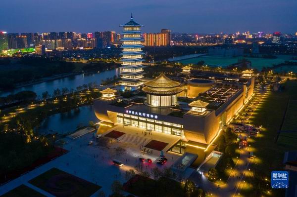 這是在江蘇省揚(yáng)州市拍攝的中國大運(yùn)河博物館夜景(2021年6月15日攝,無人機(jī)照片)。新華社記者 李博 攝 大運(yùn)河國家文化公園數(shù)字云平臺上,集納了水利、農(nóng)業(yè)、民俗、文學(xué)等教學(xué)資源的“大運(yùn)少年”模塊于近期開通。文教相融,一校一品,大運(yùn)河文化進(jìn)入校園。 習(xí)近平總書記指出,做好各項(xiàng)工作,必須有強(qiáng)大的價值引導(dǎo)力、文化凝聚力、精神推動力的支撐。 江河交匯孕育江蘇璀璨的地域文明,從優(yōu)秀傳統(tǒng)文化中汲取養(yǎng)分,文化自信之基不斷筑牢。歷經(jīng)13年編撰的《江蘇歷代方志全書》近期首發(fā),是全國體量最大的省域舊志整理工程;文藝佳作涌現(xiàn),話劇《雨花臺》、淮劇《小鎮(zhèn)》、蘇劇《國鼎魂》等屢獲國家大獎。 公共文化服務(wù)體系日益完善。江蘇省兒童藝術(shù)劇院3年舉辦巡回精品兒童劇演出1000多場次;無錫市錫山區(qū)東港鎮(zhèn)的農(nóng)家書屋為居民提供24小時閱讀服務(wù)……江蘇在全國率先建成五級公共文化設(shè)施網(wǎng)絡(luò)體系,文化空間成為百姓生活“加油站”。