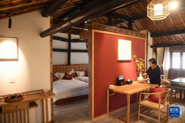 服務員在浙江省磐安縣烏石村一家民宿內整理房間(2019年4月24日攝)。新華社記者 翁忻旸 攝 寧波余姚梁弄鎮橫坎頭村發展紅色旅游,壯大綠色產業,把村子建設成遠近聞名的小康村、文明村;“麗水山耕”農業品牌創建8年來,農產品累計銷售額已超百億元;金華磐安縣尖山鎮烏石村,將烏石砌成的古民居打造成網紅“打卡”點,去年該村實現人均純收入8萬元…… 行走浙江大地,越來越多“綠水青山就是金山銀山”的故事在生動演繹。 扎實推進共同富裕示范區建設 2021年6月10日,《中共中央 國務院關于支持浙江高質量發展建設共同富裕示范區的意見》公布。以解決地區差距、城鄉差距、收入差距為主攻方向,浙江在共同富裕示范區建設上穩步前進。