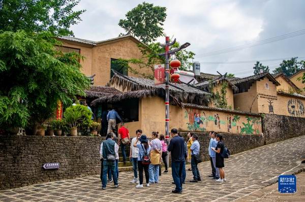 游客在騰沖市清水鄉三家村中寨司莫拉佤族村參觀(2022年5月28日攝)。新華社記者 陳欣波 攝 據三家村黨總支書記趙家清介紹,通過發展鄉村旅游,村子不僅實現脫貧致富,還解決了村民的工作問題。現在村民們不用外出打工,在家門口就吃上了“旅游飯”。2021年,全村接待游客19.8萬人次,實現農民人均可支配收入18860元,比2019年增加7412元;脫貧戶人均可支配收入達17672元,比2019年增加7214元。 |