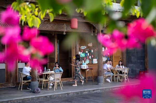 游客在和順古鎮內游覽(2022年5月27日攝)。新華社記者 陳欣波 攝 依托豐富的傳統村落資源,騰沖通過精準產業定位,實現傳統村落一二三產融合發展,走以旅游為龍頭的產業發展道路,結合傳統村落實際,培育各具特色的農旅融合產業,著力打造一批環境優美、生態秀美、民風淳美的美麗鄉村及活態傳承的傳統村落,從而實現“望得見山、看得見水、記得住鄉愁”的美好愿景。 騰沖市清水鄉三家村中寨司莫拉佤族村是一個有著500多年歷史的佤族聚居村寨,該村圍繞村莊旅游資源,成立騰沖市清水司莫拉幸福佤鄉旅游專業合作社,因地制宜構建“黨支部+公司+合作社+農戶”的經營模式,發揮傳統村落自身特色,激發傳統村落內生動力。合作社通過盤活老茶園、研發農特產品、引進司莫拉餐廳、發展大米粑粑制作等積極拓展鄉村旅游業態,農戶也自發建起了農家樂、民宿,從事農特商品售賣。