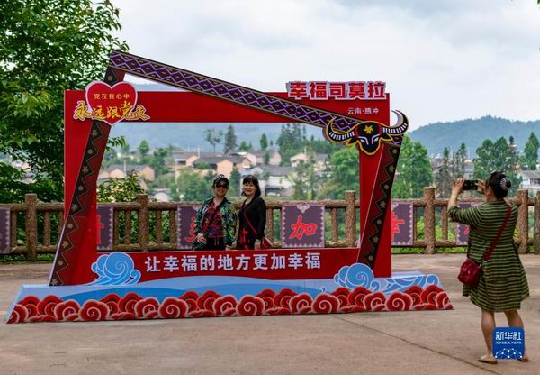 游客在騰沖市清水鄉三家村中寨司莫拉佤族村拍照留念(2022年5月28日攝)。新華社記者 陳欣波 攝 用好傳統村落資源 推動鄉村振興 騰沖傳統村落資源豐富。自2012年以來,騰沖市有5批次共86個村落入選中國傳統村落名錄,數量居全省第一。2022年,騰沖市入選傳統村落集中連片保護利用示范縣(市、區)名單,是云南省兩個入選縣(市、區)之一。