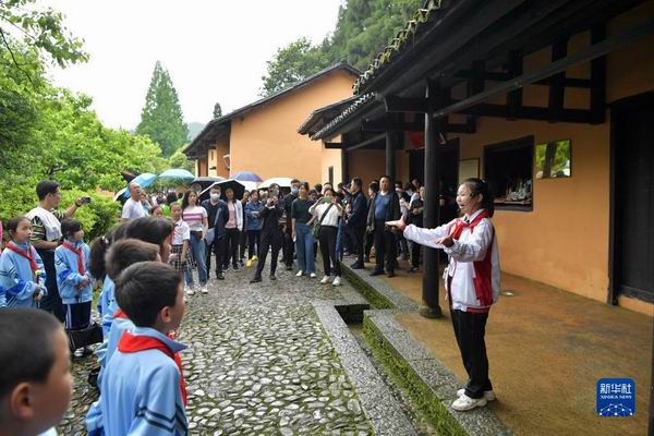 2021年5月11日,在江西省井岡山茨坪毛澤東同志舊居,“小紅軍宣講團”的團長余梓洋給前來參觀研學的學生們進行義務講解。新華社記者 彭昭之 攝 《鄉村國是》《十八洞村的十八個故事》等報告文學真實生動地講述脫貧攻堅故事;《山海情》《人世間》《我和我的祖國》等現實題材優秀影視作品廣受關注;歌曲《堅信愛會贏》、電視劇《在一起》、話劇《護士日記》等謳歌抗疫一線各行各業凡人英雄的事跡……有溫度、有筋骨、有力量的優秀作品層出不窮,激發情感共鳴,提振精神力量。
