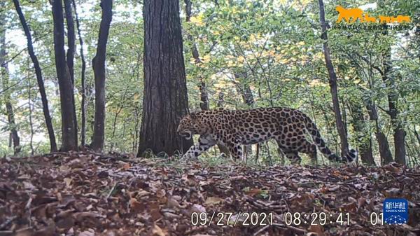 這是2021年9月27日利用“天地空一體化監(jiān)測(cè)系統(tǒng)”在東北虎豹國(guó)家公園內(nèi)監(jiān)測(cè)到的野生東北豹影像(視頻截圖)。 新華社發(fā) 一系列制度舉措有力護(hù)航,描繪出一幅人與自然和諧共生的美好圖景。