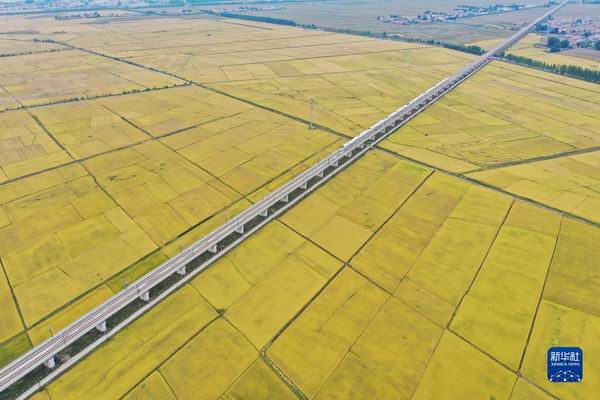 高鐵列車從吉林省公主嶺市沃野間駛過(2021年9月19日攝,無人機照片)。新華社記者 張楠 攝 吉林中部的黑土地,玉米進入灌漿期。公主嶺市乾程農民專業合作社里,理事長王成組織村民們聚在一起,嘮著今年的新變化?!凹议T口的地成為國家農業高新技術產業示范區”“天上的衛星都幫著種田了”“黑土地這個‘耕地中的大熊貓’保護得更好了”“我家嘗試玉米和大豆間作種植,效果挺好”……大家你一言我一語,氣氛熱烈。 “這兩年黨的惠農政策多,玉米增產,大家也增收了。黨的二十大召開期間,正是收獲的黃金時期。我們都摩拳擦掌為秋收做準備,攢著勁頭慶豐收?!蓖醭烧f。