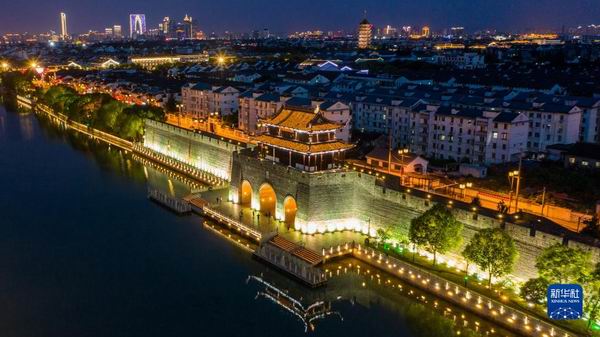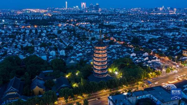 這是2020年8月24日在蘇州姑蘇區拍攝的城區夜景(無人機照片)。 新華社記者 李博 攝 新華社南京9月12日電 題:姑蘇古城:在傳承歷史文脈中煥新發展 新華社記者楊紹功 姑蘇古城北,步入一條小巷,在粉墻黛瓦間,人們抬眼就能看到那座與蘇州人歷久相伴的北寺塔。這條小巷名為塔影弄。傍晚,路燈亮起,將北寺塔的剪影映在小巷墻上,以“塔影”為元素的互動裝置引得行人駐足體驗。 “塔影入弄”的回歸是姑蘇古城“微更新”中的一幕。 “街巷更新前,弄里住了幾十年的老街坊都覺得小巷名不符實,‘塔影入弄’沒處看,只有老舊、破亂的巷子。”住在附近的老人徐文英說。 始建于三國時期的北寺塔高70多米,是姑蘇古城區的地標之一,稍微開闊一點的地方抬頭不難看到塔影,但要讓塔影入弄卻不容易。 近10年來,作為全國首個也是目前唯一的國家歷史文化名城保護區,姑蘇區積極探索創新實施古城保護,以“微更新”推進老舊街巷改造,便利市民生活,盤活文物古建,引入創業創新,讓這座有2500多年歷史的古城不斷彰顯青春活力。塔影弄這樣的小巷再度名符其實。