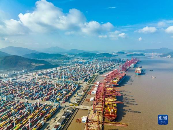 這是2020年9月27日拍攝的中國(浙江)自由貿易試驗區綜合服務大廳。新華社發(張帆 攝) 奮進新征程,浙江“數字浪潮”奔騰激蕩。 2020年4月,習近平總書記在浙江考察時強調:“大力推進科技創新,著力壯大新增長點、形成發展新動能”。分布于錢江兩岸的浙江自貿試驗區杭州片區在數字貿易、數字產業、數字物流、數字金融等方面持續發力,以僅占杭州0.22%的面積,貢獻了全市18.1%的進出口總額。如今,這里正成為長三角數字貿易重要平臺。 杭州市自貿委常務副主任王永芳說:“我們有信心到2025年,初步建成具有顯著辨識度的數字自由貿易試驗區,不負總書記的殷殷囑托?!?/p> 錢江入海,港通天下。寧波舟山港,塔吊林立、巨輪穿梭,一派欣欣向榮。