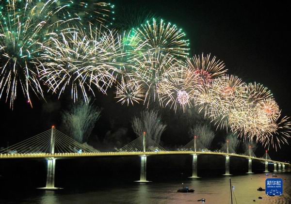 這是2022年7月26日在克羅地亞科馬爾納拍攝的由中企承建的佩列沙茨大橋通車儀式上的焰火表演。新華社記者 李學軍 攝 中國搭臺,世界合唱。