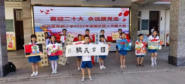02三元區(qū)陳大中心小學(xué) 開展“喜迎二十大·歡度國慶”系列活動,活動由“和國旗合影、向國旗敬禮”、“我和國旗有個約會”、“我對國旗有話說”、“我愛您,祖國母親”手抄報(bào)”四個部分組成。通過與國旗合影、錄制愛國歌曲、朗誦紅色經(jīng)典篇目等豐富的活動,營造濃厚的愛國氛圍,教育引導(dǎo)廣大少先隊(duì)員們樹立愛國之志,激發(fā)同學(xué)們同心共筑中國夢的愛國熱情。 03貴溪洋第一幼兒園 開展了“萌娃慶國慶童心頌祖國”國慶節(jié)主題活動,本次活動圍繞“線上線下”交互式展開,通過線上參加云端升旗儀式、線下獻(xiàn)禮、“重走長征路”游戲等有趣的、形式多樣的活動幫助幼兒加強(qiáng)對祖國歷史的了解,知道今天的幸福生活來之不易,培養(yǎng)幼兒愛國情感,萌發(fā)作為一名中國人的的驕傲和自豪。 04第一實(shí)驗(yàn)學(xué)校 開展“喜迎二十大 書寫向未來”國慶書法比賽。合唱團(tuán)用最美好的歌聲為祖國媽媽獻(xiàn)上祝福! 05區(qū)實(shí)驗(yàn)幼兒園 開展了“童”心慶國慶 ,喜迎二十大國慶節(jié)主題系列活動。幼兒通過“重走長征路 爭當(dāng)小紅軍”的戶外活動再次踏上了“長征之路”表達(dá)對祖國母親最美好的祝愿和迎接國慶的喜悅之情。 06東新小學(xué) 舉行“童心向黨,爭做時代好少年"主題系列活動,“我為祖國唱首歌"“我為祖國畫幅畫”“我對祖國有信仰”“百人書畫大賽”“紅色故事演講比賽”一系列活動,展示了東新少年“請黨放心,強(qiáng)國有我”的精神面貌,為祖國獻(xiàn)上深情的祝福! 07實(shí)驗(yàn)中學(xué) 舉辦“喜迎二十大,禮贊新征程”師生畫展。全校師生激情潑墨,為夢想作畫,以創(chuàng)作激發(fā)奮進(jìn)意志,以作品抒發(fā)愛國熱情,用一幅幅色彩飽滿、格調(diào)清新的畫作,表達(dá)對黨拳拳的心和赤誠的愛,展示對未來滿滿的自信與無限的憧憬。