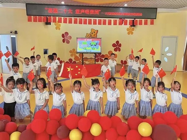 08三明四中 開展“喜迎二十大,為祖國慶生”文藝匯演,以文藝表演的形式,抒發(fā)愛黨愛國的真摯情懷,展現(xiàn)新時代青少年不忘初心、奮發(fā)向上的精神風(fēng)貌,賡續(xù)紅色精神、呈現(xiàn)青春風(fēng)采,以實(shí)際行動迎接黨的二十大勝利召開! 09陳景潤實(shí)驗(yàn)小學(xué) 開展“喜迎二十大 歡度國慶”主題系列活動,同學(xué)們通過書法作品、和國旗合影、為祖國送祝福等形式,向偉大祖國深情告白。 10徐碧實(shí)驗(yàn)幼兒園 開展“喜迎二十大 童心愛祖國”慶祝活動。老師們根據(jù)幼兒年齡特點(diǎn),分別開展了手工制作、歌唱祖國、詩歌朗誦等形式多樣的活動。活動中,孩子們用稚嫩的小手和童聲,表達(dá)了對祖國母親的贊美和熱愛。 長安小學(xué)、中村小學(xué)、列西幼兒園、第二實(shí)驗(yàn)幼兒園、貴溪洋第二實(shí)驗(yàn)幼兒園、莘口中心幼兒園、第三實(shí)驗(yàn)幼兒園、實(shí)驗(yàn)幼兒園山水分園、崇寧分園、東霞幼兒園等學(xué)校也舉行了豐富多彩的慶國慶活動。 |