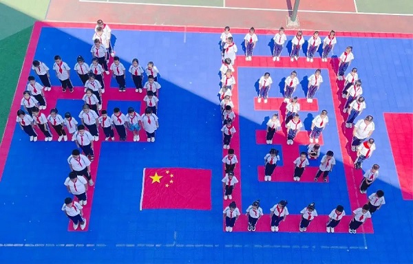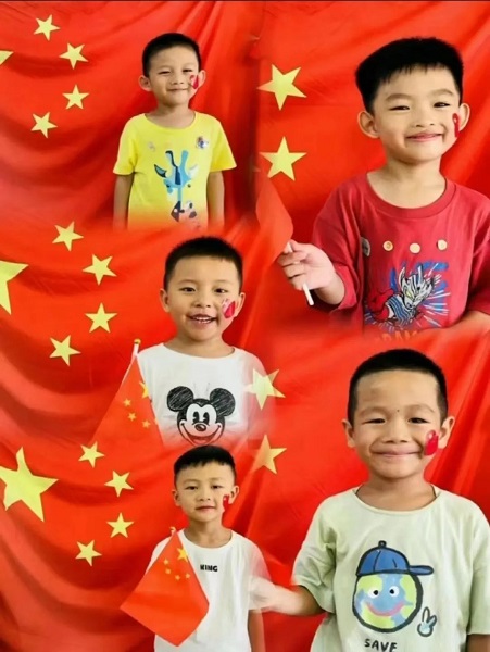 秋風(fēng)送爽,丹桂飄香 為慶祝中華人民共和國成立73周年 迎接黨的二十大勝利召開 在國慶節(jié)來臨之際 三元學(xué)子用自己的方式 為祖國母親送祝福 01列東實(shí)驗(yàn)幼兒園 開展“喜迎二十大·同心迎國慶”系列活動,活動由“有聲環(huán)境·營造氛圍”、“喜迎國慶·禮贊祖國”、“千里江山·盛世華誕”、“童心愛國·游戲增彩”四個部分組成。“天安門、五星紅旗、和平鴿、宇宙飛船……”教師帶領(lǐng)大班幼兒一起手繪一幅十米《祖國如此多嬌》畫卷,描繪出對黨和祖國的熱愛。