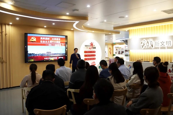 為進(jìn)一步宣傳貫徹黨的二十大精神,推動(dòng)理論宣講走向基層、走進(jìn)群眾,11月4日下午,三元區(qū)委宣傳部舉辦“福小宣·三言明理”黨的二十大精神示范宣傳活動(dòng)走進(jìn)區(qū)新時(shí)代文明實(shí)踐中心。 示范宣講活動(dòng)從觀看《閩山閩水物華新——習(xí)近平福建足跡》讀書特別節(jié)目中拉開(kāi)序幕,“三言明理”宣講團(tuán)成員鄧林帥為大家講述《炸藥包下?lián)尵取澳戏街芸诘辍薄返纳鷦?dòng)實(shí)踐故事,并邀請(qǐng)市委黨校副教授陳錦琪從黨的二十大報(bào)告的二十個(gè)關(guān)鍵詞出發(fā),為大家作黨的二十大精神宣講報(bào)告。