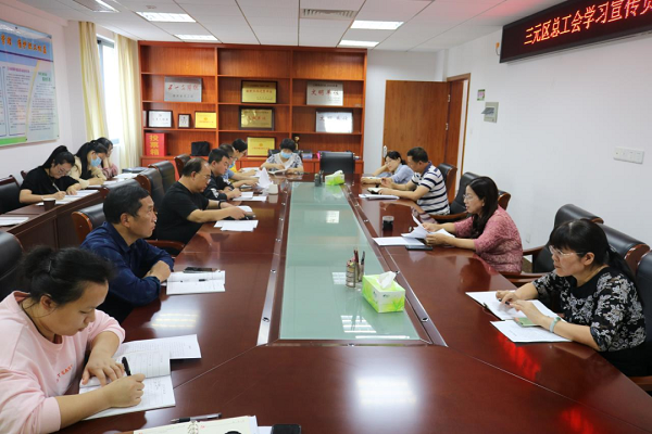會議要求,全體機關干部要認真學習領會黨的二十大精神,以高度的政治自覺,把思想和行動統一到黨的二十大精神上來、凝聚到實現黨的二十大確定的目標任務上來,精心組織,扎實推進。迅速掀起學習熱潮,要做到領導干部帶頭學、原原本本系統學、聯系實際深入學,抓住核心要義,深刻領悟原理,切實推動二十大精神入腦入心;緊盯目標完成任務,要切實做到“三個抓”,即抓經濟運行分析、抓項目攻堅推動、抓對口合作推進,確保圓滿完成全年各項目標任務;結合實際謀劃思路,要結合黨的二十大精神、革命老區高質量發展示范區建設、“十四五”規劃及各專項規劃、區委區政府的中心工作,及早謀劃明年工作思路,為全區工作大局貢獻更多發改力量。 區總工會 11月11日,三元區總工會召開干部職工大會,專題學習黨的二十大精神。